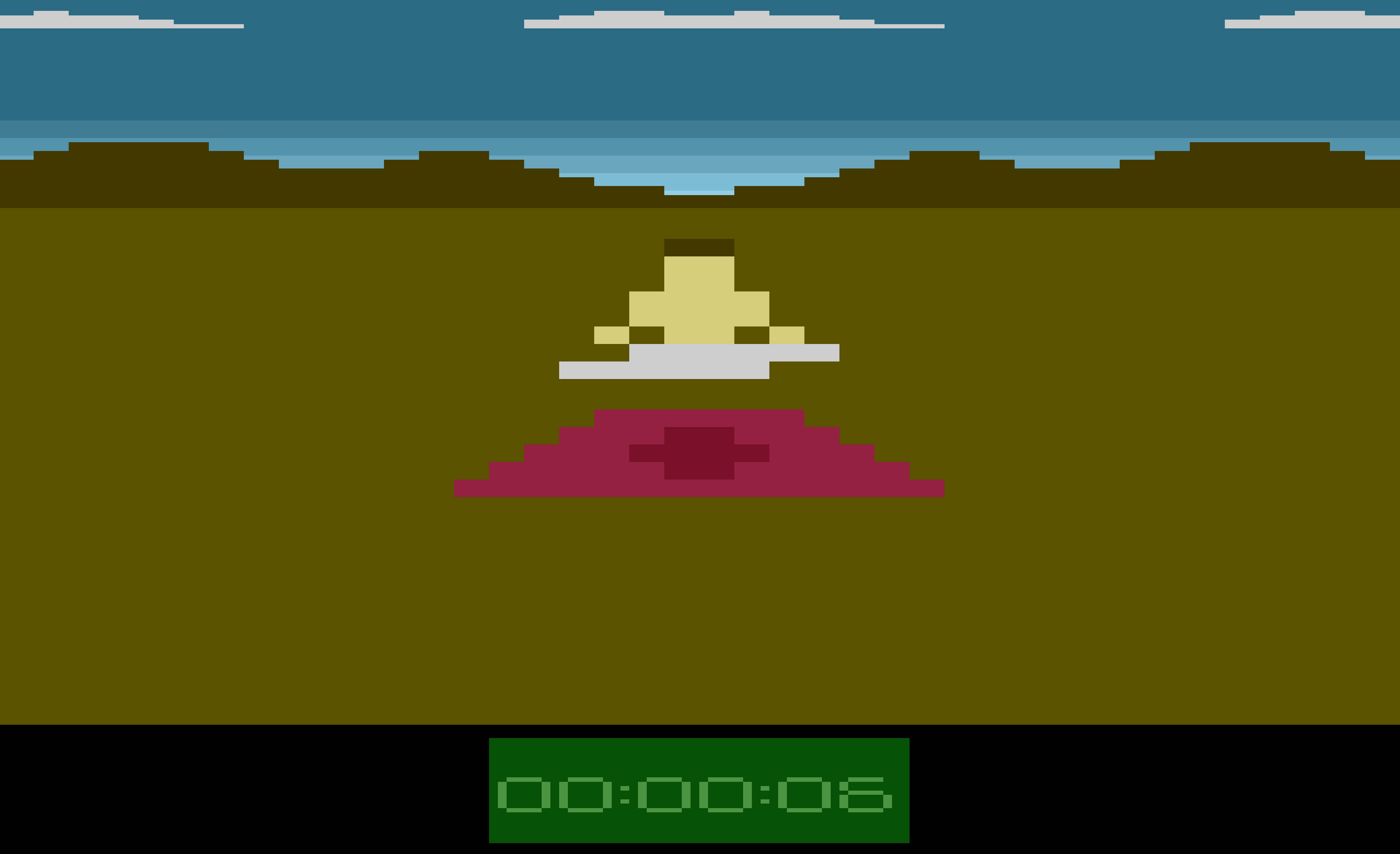 Guru Meditation is my attempt to create a legitimate zen meditation game. It is also partly (perhaps largely) a reimagining of and homage to the Amiga lore, and for that reason I wrote it in 6502 assembly for the Atari VCS, so that it could be played with a joyboard, an unusual “joystick for the feet” manufactured by Amiga in 1982.