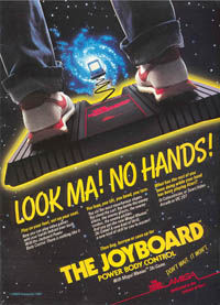 , a joystick for the feet. The player would stand on the joyboard and rock side to side or front to back to play a game. The device shipped in 1982 bundled with a skiing game,
